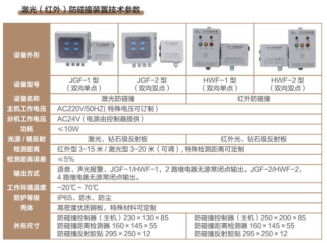 激光(紅外)防碰撞裝置技術(shù)參數(shù) 瀏覽:1262